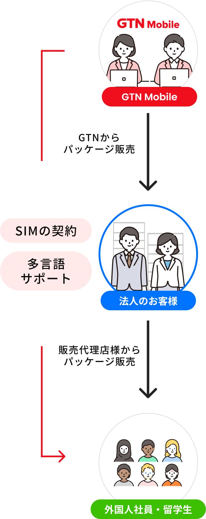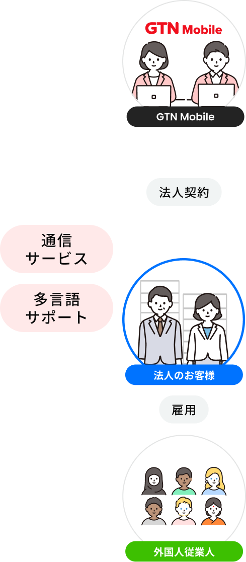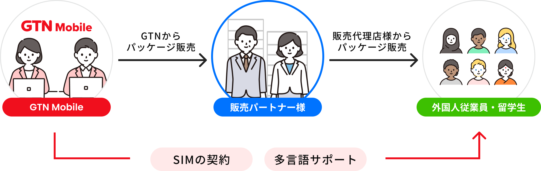 GTN Mobile for Bizのパートナー制度は、外国人向けSIMや生活サポートを紹介するだけで、手間なく安定収益が得られる仕組みです。契約や在庫管理はGTNが対応するため、初期費用やリスクもありません。