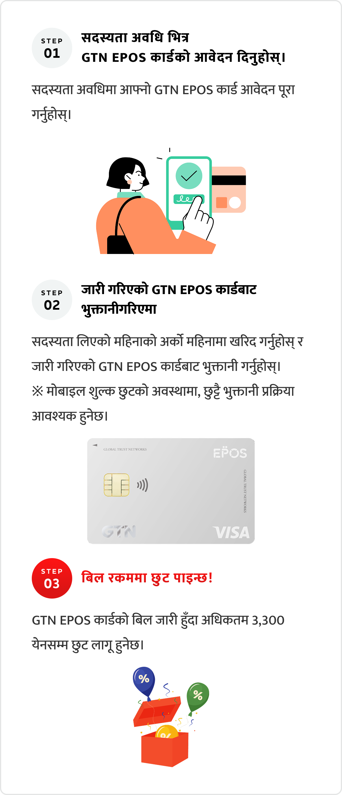 *कार्डको डिजाइन जे भए पनि, यदि तपाईँले पहिले EPOS कार्डको सदस्यता लिइसक्नु भएको छ भने, यो क्याम्पेनका लागि योग्य हुनुहुने छैन।