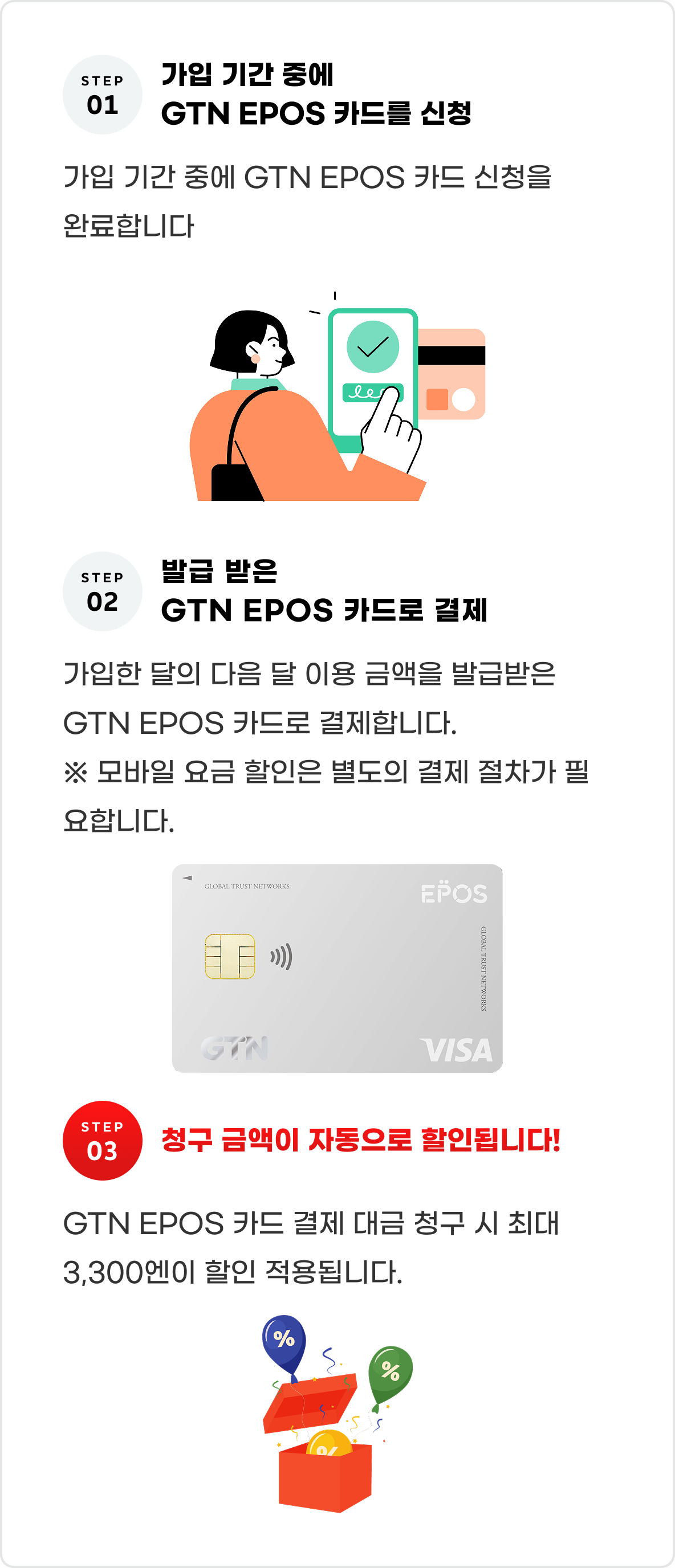 GTN EPOS 카드 청구일에 자동으로 할인 적용됩니다.
