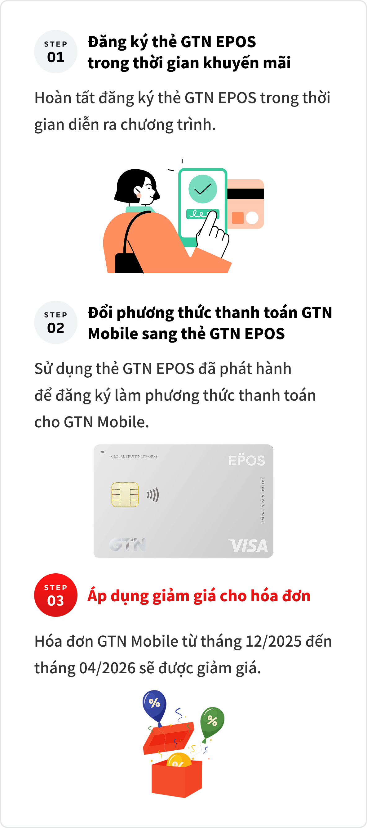 (1) Hoàn tất đăng ký thẻ GTN EPOS trong thời gian khuyến mãi