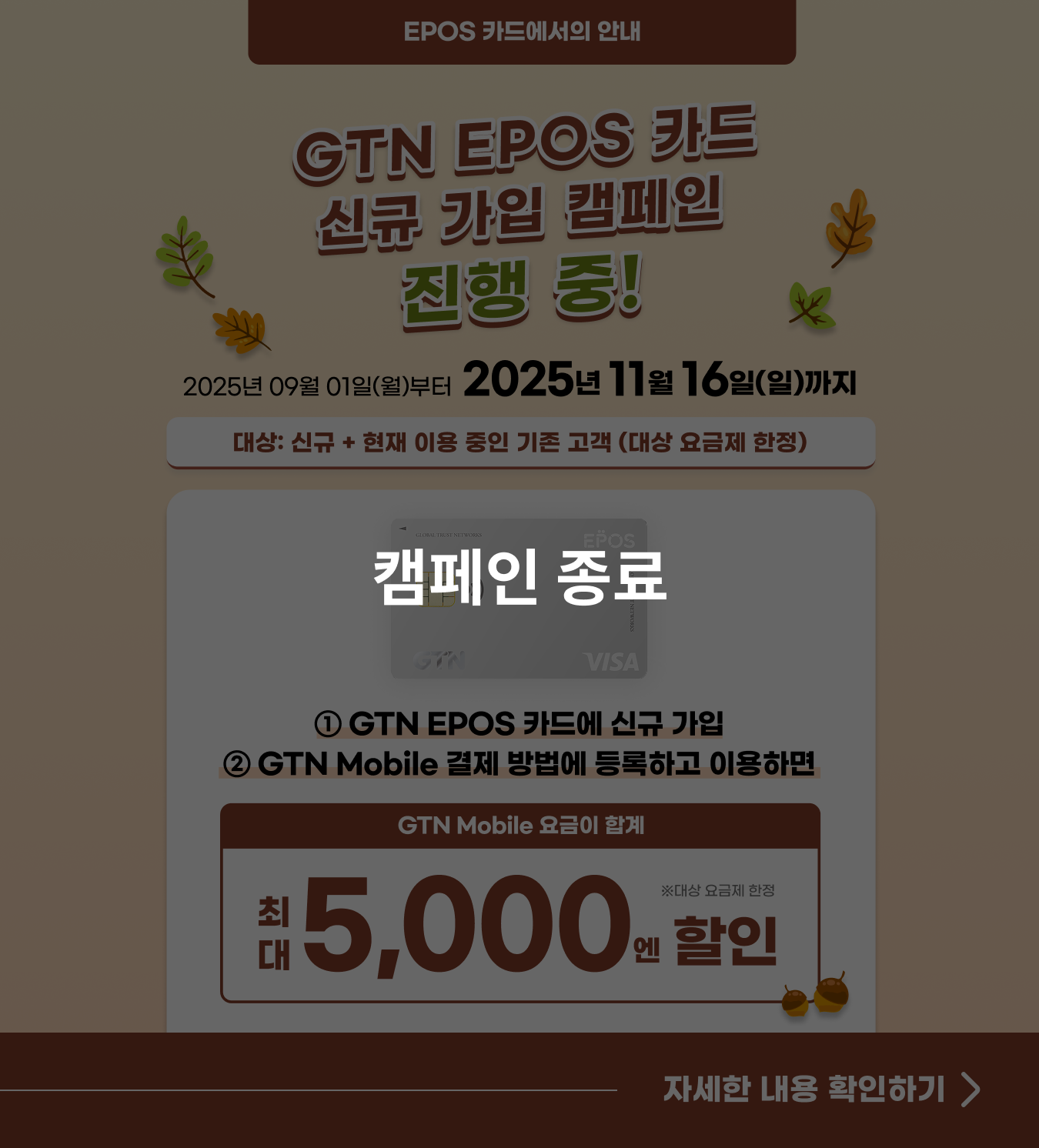 - *1 심사 결과에 따라 신청이 승인되지 않을 수 있습니다. GTN EPOS 카드 발급이 불가능한 경우, 자동으로 편의점 결제로 변경되므로 안심하셔도 괜찮습니다. 또한, 심사에는 시간이 소요될 수 있으니 양해 부탁드립니다.